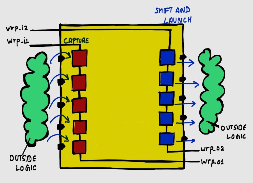 - Output wrapper chains launch data into the outside logic and input wrapper chains capture data from outside logic.